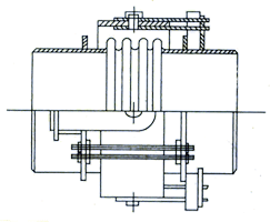 該補(bǔ)償器與角向型不同處在于它有一個萬向環(huán)在萬向環(huán)的周向有二對互相垂直的鉸鏈結(jié)構(gòu)。因此它能吸收任意平面的角位移。同樣吸收位移時需二個或三個組合使用,不允許單個使用。